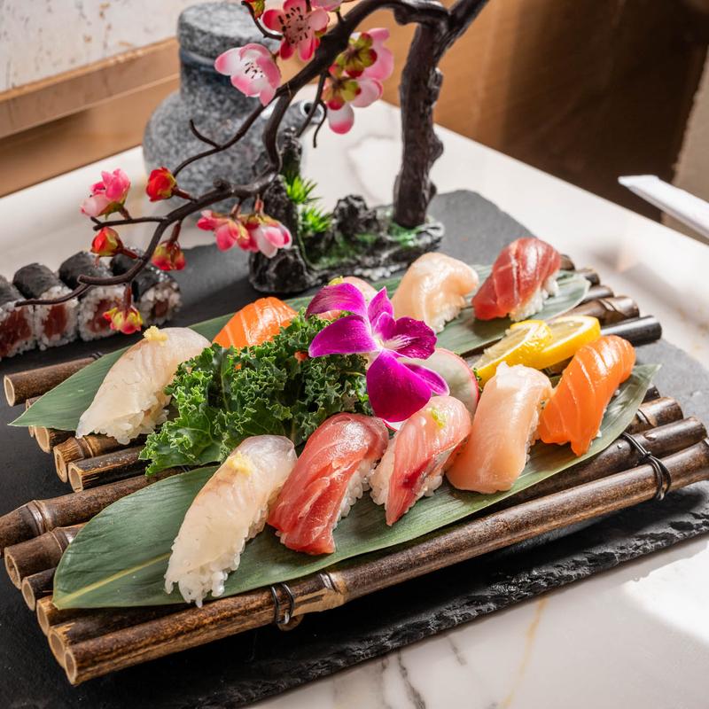 10pcs mixed sushi by chef's choice and 1 Tuna roll